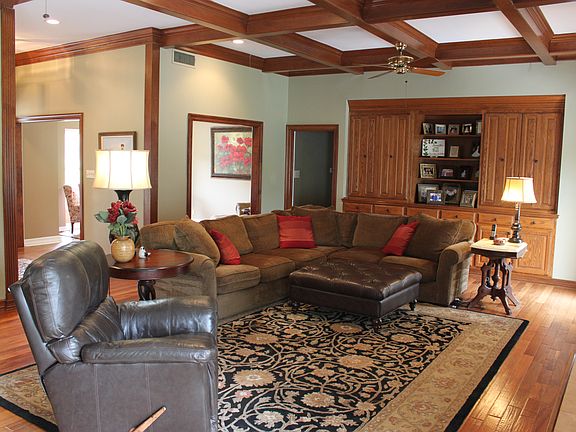 Tucked away into a private small community with large lots, this home has a circle driveway, detached three car garage, a boat storage area and a small livestock shed, great for chickens. There is no HOA but very well maintained. Sits on 2.26 acres which is fenced 2/3rd's of the way around. Walk into a home full of character with wood detail on the ceilings, wood floors, large rock fireplace, double ovens, butlers pantry, large family room, large gameroom and 4 bedrooms. Front room can be a study