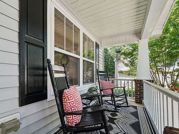 This immaculate two-story residence, nestled on a serene cul-de-sac lot, invites you to a charming rocking chair front porch entry. Step inside to an open floor plan with fresh interior paint, beautiful millwork, and stylish features throughout. The Family Room boasts a wood-burning fireplace and is open to the white cabinet Kitchen featuring Granite counters, SS appliances, and deck access for effortless entertaining. Upstairs you'll find Bamboo flooring, a Primary Suite with a beautifully updated en-suite bath, and two additional bedrooms with generous closets that share a Jack & Jill bath. Outside, a new deck awaits in the private tree lined fenced backyard. Additional standout features include a 2-car Garage with epoxy flooring and built-in shelving for all your storage needs. Newer HVAC & Roof, community pool/playground, spectacular location, and so much more!