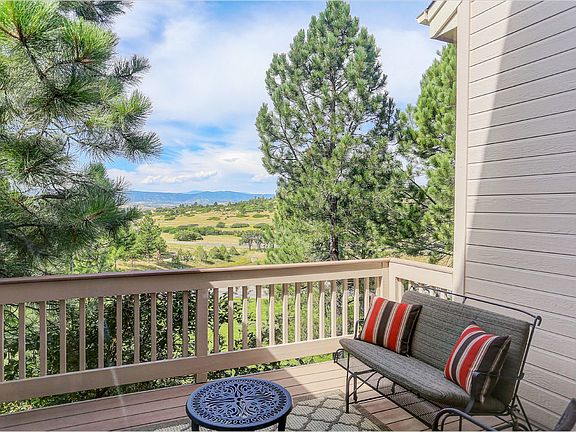 With its luxurious main floor master retreat, complete with spectacular mountain views, fireplace, surround sound and updated master bath, this fabulous Castle Pines Village home offers the convenience of ranch-style living, with all the wonderful space options available in a 2 story home with a walk-out basement. ** Backing to open space and Daniel's Park where elk graze, you can enjoy watching the wildlife and sunsets over the Rockies from the west facing deck or lower level patio. The yard is artistically landscaped with natural vegetation. ** Vaulted ceilings, extensive hardwood floors, decorator niches and large windows define this home. ** French doors lead into the main floor study/ library with crown molding. ** The formal dining room with a tray ceiling can accommodate a crowd. ** Any cook would enjoy this updated spacious gourmet kitchen. Ingredients include updated 42” cabinets with crown molding, slab granite, gas cooktop, double ovens, refrigerator and a walk-in pantry. The breakfast bar is perfect for gatherings and offers a casual dining option. An adjacent dine-in eating space flows onto the deck. ** A wall of windows framing the amazing views graces the two story Great Room with dramatic stone fireplace. Surround sound is wired. It is designed with luxury in mind! ** The main floor master suite is complete with a coffered ceiling and cozy fireplace. The five piece bathroom is pleasantly appointed and remodeled with an Euro glass shower, slab granite, contemporary cabinets and a substantial custom walk-in closet. The spa-like feeling is refreshing! ** Laundry is a snap on the main level with a utility sink, plenty of cabinets and washer & dryer. ** Upstairs is host to two guest/kids bedrooms…all generous in size. An over-sized loft is such versatile space for all family members to enjoy. ** The finished walk-out basement provides even more living space to enjoy. You will find two guest bedrooms that can accommodate an entire family. The bedrooms could double as a kids playroom, workout room or crafts center. ** Entertaining is a delight in the large media/recreation room with a wet bar, wine refrigerator & dishwasher. Movies are fun to watch in the media room with blackout shades. Enjoy a game of pool in the billiards room. ** Other notable features include: electrical wiring for a future hot tub on lower patio, lots of closet space, dual water heaters, wiring for panic button/emergency services, overhead sprinkler system and fully finished 3 car garage. ** Castle Pines Village is a prestigious gated master planned community and offers internationally recognized golf courses by Jack Nicklaus, poolside fun, fitness center, tennis courts and architectural masterpieces nestled among the lush pine tree forest and rocky outcroppings. Questions? Please call Karen @ 303-905-6875. Thank you!