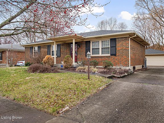 Welcome home to this adorable brick ranch on a quiet street in Breckenridge Estates! This inviting 3 bedroom, 2 bath home is cozy and offers great space for entertaining. Enter through a covered front porch to find beautiful hardwood flooring and the perfect layout. The spacious kitchen offers white cabinetry, stainless appliances, granite countertops and a nice breakfast bar open to the family room. A cozy fireplace and stylish exposed beams enhance the room and make it a wonderful place to lounge and unwind. Additional rooms continue the flow of genuine hardwood flooring and can be used as a formal living room, dining room, office, or whatever fits your lifestyle. The primary bedroom has a full ensuite bathroom with convenient sliding glass shower doors. Two additional generously-sized bedrooms and a second full bathroom complete the main level. The lower level provides a large, carpeted den that can be an additional lounging area or game room. Storage possibilities are abundant with the unfinished space in the basement. Outdoors, you'll enjoy the completely fenced-in backyard, beautifully laid patio and a 2-car detached garage. A small deck and door off of the kitchen and family room make the backyard easily accessible for gatherings of family and friends. The roof was recently replaced in 2021 as well as new custom security doors installed. On a nice lot near Hikes Point, St. Matthews, and J-Town, you'll be within minutes of dining, retail, expressways, and entertainment. Schedule your private tour today!