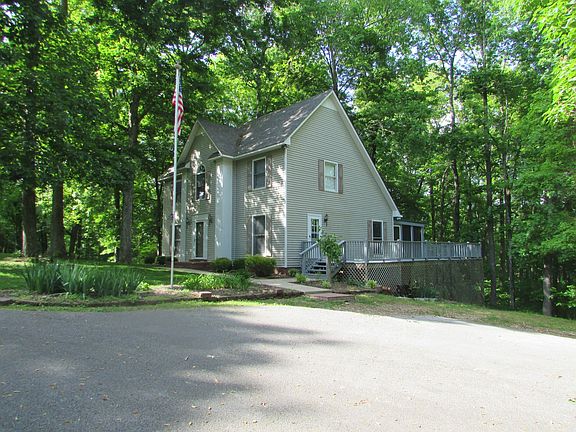 3BR, 2 1/2 bath home on 3.67 acres. Home has large living room, eat-in kitchen, dining room, master bedroom downstairs with 2 additional bedrooms upstairs, loft area overlooking living room, screened in deck has beautiful views of wooded 3.67 acres.