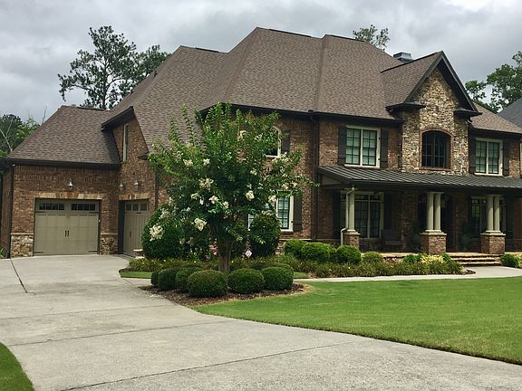 This custom built brick and stone home, has an elegant rocking chair front porch, rear deck, and cozy screened porch that overlooks a private lake. Interior Features include a grand 2-story entrance foyer, separate den/library, formal dining, 2-story family room with a wall of windows overlooking the lake. A true chef's dream kitchen has commercial grade appliances, pot filler, and large walk-in pantry. Early Morning's are a delight in the breakfast room with lake views. Bdrm on main, w/ private bath, and private door to the outside deck. Upstairs boasts Master suite with sitting room,bath, separate his/her's sinks, and closets, extra-large jetted tub, and relaxing steam shower. 3 addl bedrooms with private bath, 2 w/Jack & Jill bath. Plus so much more!