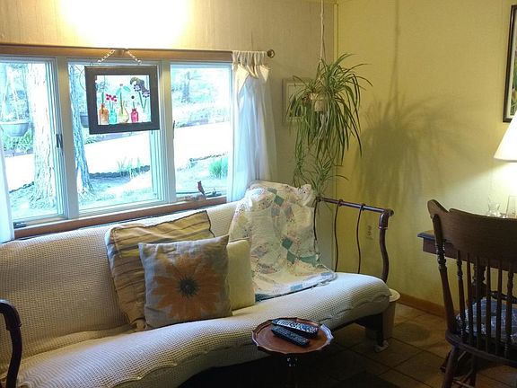 LOCATION!!LOCATION!!LOCATION This is a great 2 bedroom 1 bath home on just under 15 acres!! Located just outside of the city limits. Property features great views with a large deck off the living room overlooking the pond which has it own well!! The Master Bedroom has a private deck with a built in fish pond. A great enclosed porch with entry into 4 seasons sunroom. Large living room with wood stove beamed ceilings and large windows looking out to the property. Home has a water softener with a filtration system AND NATURAL GAS!A beautiful barn with a spacious upstairs that could be finished off for a separate living are or mother in-law suite and detached garage. Great for an UP NORTH getaway or year round living. 30 -40 min walk on the trails to Lake Michigan 5mins to Downtown Manistee