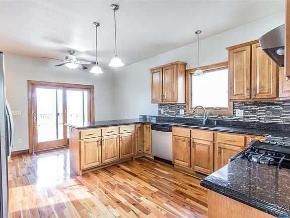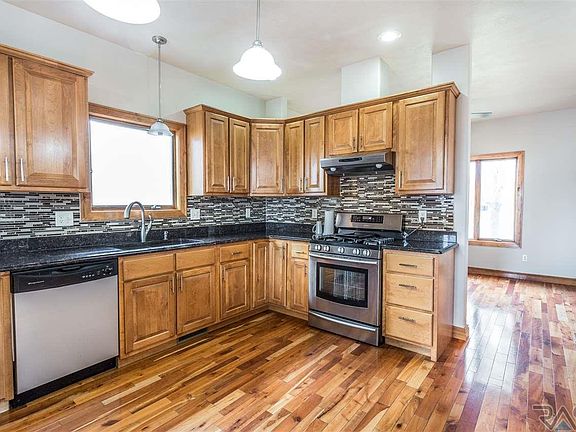 Close to New High School and New Retail! Move right in to this great Ranch Walkout with New Carpet & New Paint! No Back Yard Neighbors with Oversized Deck Looking with Private Views! Cherry Hardwood, Stainless Steel Appliances with Gas Range, Granite Countertops with Breakfast Bar and Formal Dining Area! 3 Bedrooms on Main! ALL 5 Bedrooms are Oversized! Lots of Storage! Main Floor Laundry! Massive Garage with Water Hookups, Drain & 220V! This house has never had a drop of water in the sump pit! Feel Safe and Right at Home! Come See it Today! Seller is a licensed Real Estate Agent in the state of South Dakota.