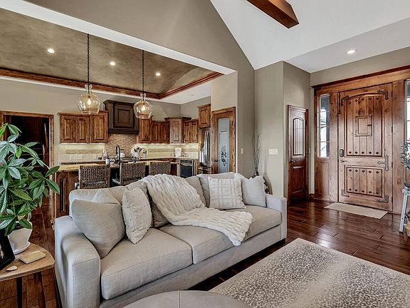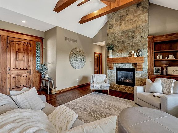 Magnificent custom-built masterpiece with attention to detail. This stunning almost 4000 sq ft home has 5 bedrooms, 4 bathrooms, 3 fireplaces, 3 car oversized garage, finished walk out basement. Those of course are the basics, the master suite is just that, enormous bedroom, large walk-in shower and a stunning standalone copper soaker tub. The builder didn't forget a massive walk-in closet that leads to the laundry room with mud sink and cubbies. There is another main floor suite that in many homes would be the master suite. The kitchen, dining and living room are open concept but delightfully arranged. Vaulted and barrel rolled ceilings, Granite, recessed lighting, walk in closets and surround sound throughout the home inside and out are just some of the extra features. The kitchen has a large walk-in pantry with automatic lighting and, the double ovens will make your life so much easier. You will love the privacy of the loft area. It has a full bath and walk in closet, but its charm gives you options, Art studio, office, kids study zone. The finished basement has light galore, large view out windows, not one, but two large sliding glass doors that take you out to the patio. The large family room is inviting, and the stoned wet bar screams luxury with the ice maker and wine fridge. There are two additional bedrooms and one full bathroom in the basement. Sellers have chosen to use one as a workout room as it has the 2nd walk-out door to the patio to allow the fresh air in. You'll feel the difference when you walk onto the rubber flooring. You'll spend countless hours on the large upper covered deck with the outdoor kitchen, then saunter down to the enormous stone fireplace and cozy up to the fire. The professional landscaping adds additional character to the home. Come, see for yourself and fall in love.