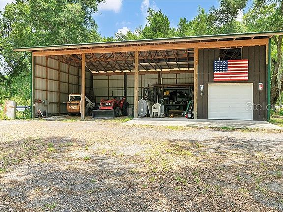 47 acres income producing ranch in S Brooksville-Rare find. Pastures, Creek, Fencing, 5000sf Commercial Garage w/RV Parking, HayBarn, Carport/Garage/Shop, & a Dream Home. SOLAR panels w/net meter-SELL POWER BACK to power company-virtually no cost Electric for you! Original 1 bedroom 1 ba home upstairs built over grand Horse Barn. Perfect B&B, AirBnB too! Later, the owners converted barn to 3 bedroom 2 bath home while keeping the charm of the original barn. Must See photos. Original Stall Doors remain, High end Luxury vinyl floors for easy care. Grand Chef???s dream kitchen overlooking pastures, w/Jenn-Air gas stovetop, FischerPaykel Dishwasher, Touch Faucet, French Door Caf?? series Convection oven, Custom Cabinets floor to ceiling w/ glass display cab???s @ top. Luxury level granite counters. Lots of wood on walls, LP Fireplace, 2 bedrms N side separated by foyer/study area, 10???ceilings. Owner Suite w/ dual closets, luxurious tiled shower, w/granite dual vanity counters & tons of storage. Full laundry rm w/ cabinets & sink. Rinnai Instant Water Heater. Upstairs 1 bedrm, 1 full luxury shower bath, stack washer/dryer, wood burning fireplace, open great rm & well appointed kitchen w/all appliances & custom wood cabinets. Ext Propane Plumbing for Grill. All w/ views of this gorgeous ranch. Large Screened Balcony for watching the wildlife! You've got to see this one. Gated property. Please ask for all the details-too numerous to list.