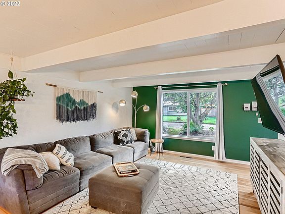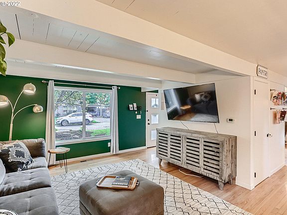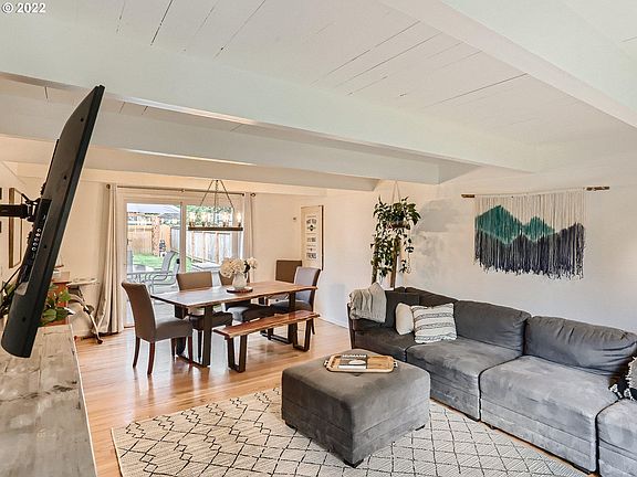 Fabulous 1957 Ranch.Original wood beam ceilings,oak hardwood floors, formal living & dining w/access to HUGE backyard.Kitchen w/new quartz counters opens to family rm w/ gas fireplace.3 bedrooms up w/oak hardwoods,full bath w/double vanity.Bonus space w/polished concrete flr currently used as gym &play space.New driveway extends beyond gate to backyard- Great for RV parking.Oversized 70x115 lot w/raised beds,potting shed &fantastic patio.2017 remodel w/new windows,roof,elec panel,furnace,& more. [Home Energy Score = 1. HES Report at https://rpt.greenbuildingregistry.com/hes/OR10202433]