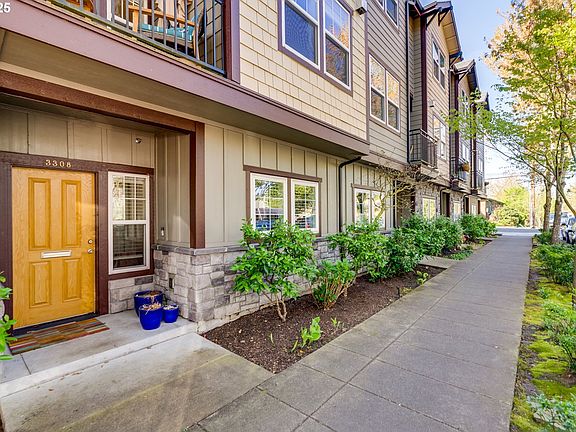 Welcome to your modern retreat in the heart of Sunnyside, just moments from all the boutiques, coffee shops, and eats that make Belmont one of SE Portland’s favorite streets. This bright and thoughtfully designed townhome-style condo offers a perfect blend of style, function, and location. Inside, the open floor plan flows across maple hardwood floors, with natural light pouring into the spacious main living area. The kitchen is a dream for home cooks and takeout fans alike, featuring granite countertops, gas range, and a breakfast bar that’s perfect for casual meals or late-night chats. Cozy up by the gas fireplace in the living room or slide open the door to the balcony and enjoy a sunny moment or evening breeze. Upstairs, the primary suite impresses with vaulted ceilings, a ceiling fan, double vanity, walk-in shower, and plenty of space to relax and recharge. A second bedroom and full bath round out the top floor, while the entry-level bonus room offers endless flexibility: think WFH space, yoga studio, guest retreat, or creative corner. Just three blocks from Laurelhurst Park, you'll be perfectly positioned to take full advantage of summer picnics, concerts, and community vibes. And when you're not out exploring, your private garage has room for your car, bike, storage, and even a workbench, because yes, you really can have it all! Tucked into a quiet pocket of one of Portland’s most vibrant neighborhoods, this townhome offers the best of both worlds: peaceful, easy living just blocks from the energy of Belmont and the serenity of the park. Come see where comfort meets convenience, and start imagining life in Sunnyside!