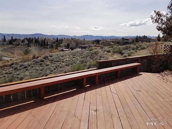 Location! Views! Feast your eyes on views of the city, mountains, and treetops from the back deck of this attractive home in desirable SW Reno. Beautiful vistas greet you from the living room, dining room, and kitchen as well. Enjoy 4 bedrooms, 3 full baths and a separate family room. The front brick path invites you thru the gate to the private entrance, or back to the spacious wrap-around deck with its panoramic VIEWS! Reasonable HOA fee includes community pool, tennis courts, park, playground, and more. The street name says it all: Skyline View! No front or rear neighbors. HOA maintains defensible space beyond back fence where the natural landscape of sagebrush slopes down to the meandering trail along Steamboat Ditch. New water heater. New toilet in master. Garage cabinets and pegboard stay. Buyer and buyers agent to verify all information.