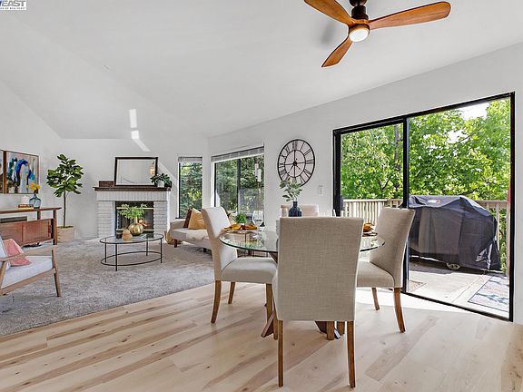 Welcome to this charming upstairs condo nestled among the trees. Fully updated light & bring home offers a serene feel and idyllic living experience. This home boasts vaulted ceilings, designer style and modern comforts. Spacious living & dining area with cozy fireplace. Stylish kitchen offering stainless steel appliances, ample counter space and recessed lighting. Enjoy in unit laundry, two spacious bedrooms, sparkling baths & lovely new wood laminate floors. Relish in the enchanting outdoor balcony where sounds of nature and views of Tawny Park create an oasis of relaxation. Prime location, convenient to all the area offers including Downtown Pleasanton, Hwy 580/680, aware winning schools and a short drive to the enticing Livermore Wineries. Enjoy a 1 car garage & community pool perfect for summer. Hurry, don't miss this fabulous home.