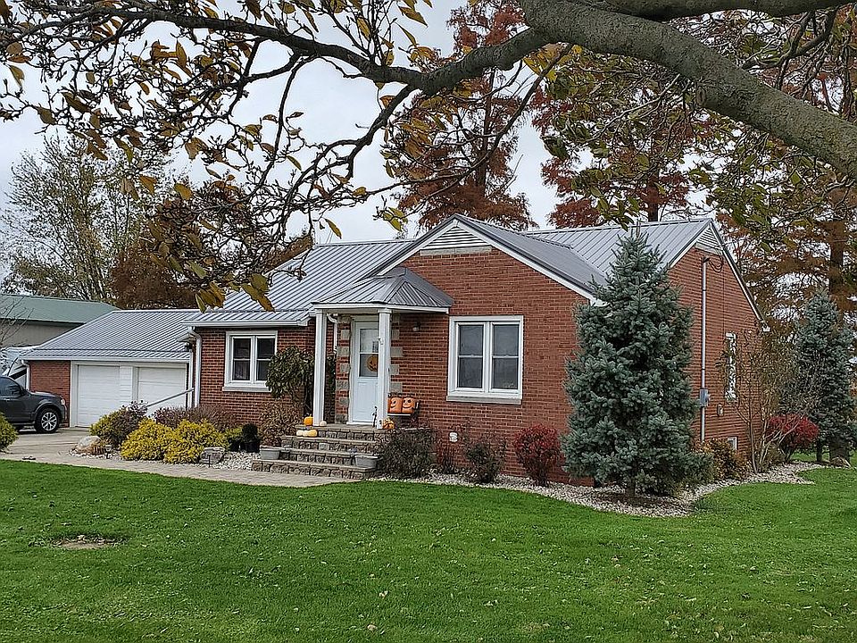 Nice brick home with beatiful paver patios all around. 4 bedroom 2 full bath house built in 1940 approximately 1900 sqft. on nearly 2 acres with Snail Creek running through back of property. 2 bedrooms with 1 full bath on main level and 2 bedrooms 1 full bath and laundry room in basement. New metal roof last year, newly replaced 4 year old gas furnace and central air, nice vinyl windows, all appliances included. Thare 30' x 50' pole barn that is completely finished and insulated used as a mechanics shop, plus a 22' x 26' detached 2 car garage that is finished and insulated as well. Also there's a dog kennel and chicken house. Has a finished basement with a walk out door to large rear patio. House is very well maintained and very easy to heat and cool. Awesome neighbors and plenty of possibilities.