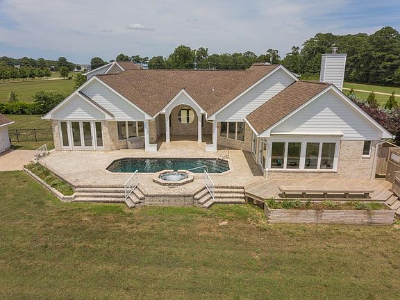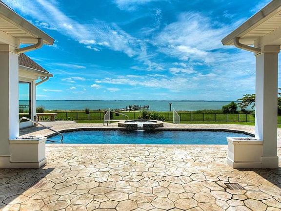 Coastal Beach Escape encompasses 7.95 meticulously landscaped acres of pristine property offering the most desirable views of the Rappahannock River and Chesapeake Bay. As you step through the front doors onto the gorgeous Australian Cypress floors, unique architectural features instantly draw you outdoors to the impressive RR views, and the custom-designed stamped concrete covered patio, the perfect gathering space. Admire breathtaking sunsets, relax by the saltwater pool & spa, put your toes in the sand on your 300' private beach, and stroll along the dock equipped with a boat lift & kayak launch. The 4,399 sq. Ft. open floor plan allows you to entertain and enjoy beautiful views from the expansive kitchen with its island suited for numerous guests, into the spacious living and dining areas, and the wet bar leading to the deck. One floor living makes it easy to escape to your tranquil master retreat, and private entrance to the patio. Game room, home theater, in-law suite, there are endless possibilities for the unfinished space above the four-car/bay garages. This view of the river is highly coveted for its timeless beauty. Make it yours today! Property includes over 16 acres of Kings Grant acreage in the water...a true property asset...no one can Oyster, crab or recreate if front of your home (16 acres worth!) without your permission!!!