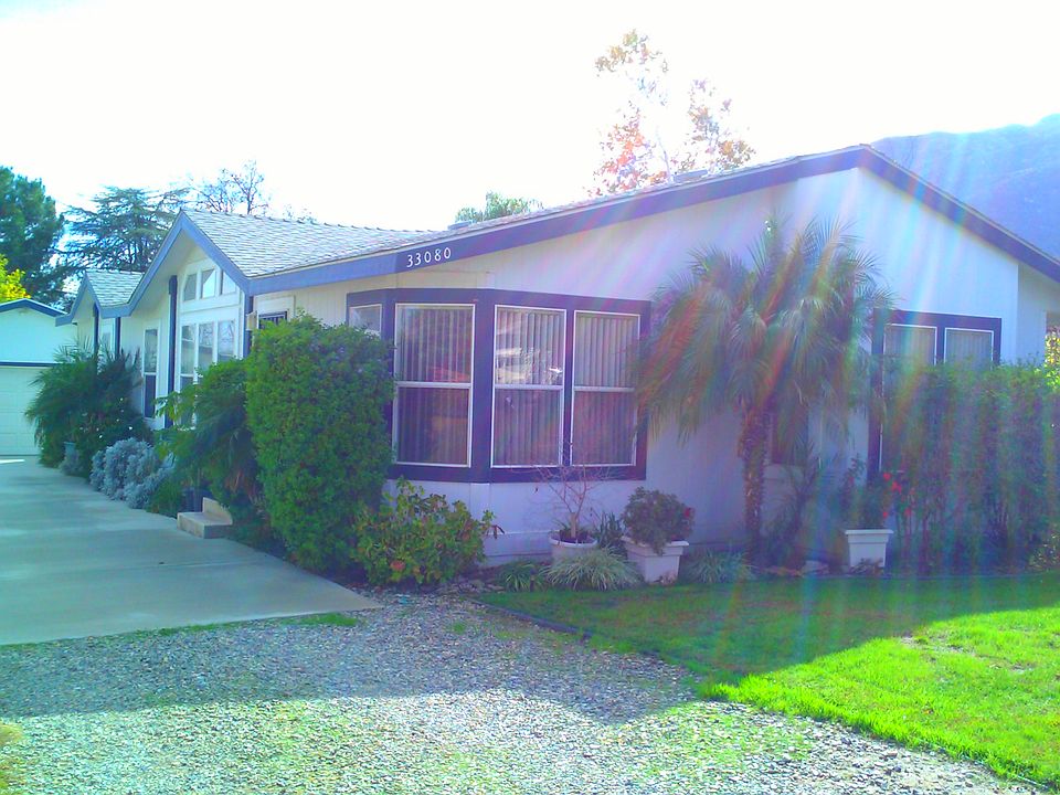 Beautiful Manufactured Home with Detached Garage IN ESCROW IN ESCROW. 33080 Oregon St No Brokers or Agents Please,, BUYERS ONLY. Beautiful Manufactured Home in Lake Elsinore. This home features a formal living room with dining area, spacious family room and 2 car detached garage. Rear yard is completely fenced and perfect for your pets and or family events. Bay windows provides lots of light. Nice kitchen with built in stove and Refrigerator stays. Very clean and meticulously kept. Beautiful view of the Cleveland National Forrest. Washer/Dryer, Refrigerator, Microwave and Freezer in the Garage ALL STAY!!! Won't last ...long, please call me to get pre-qualified with Stuart Financial. Tim Waters 949-235-4732