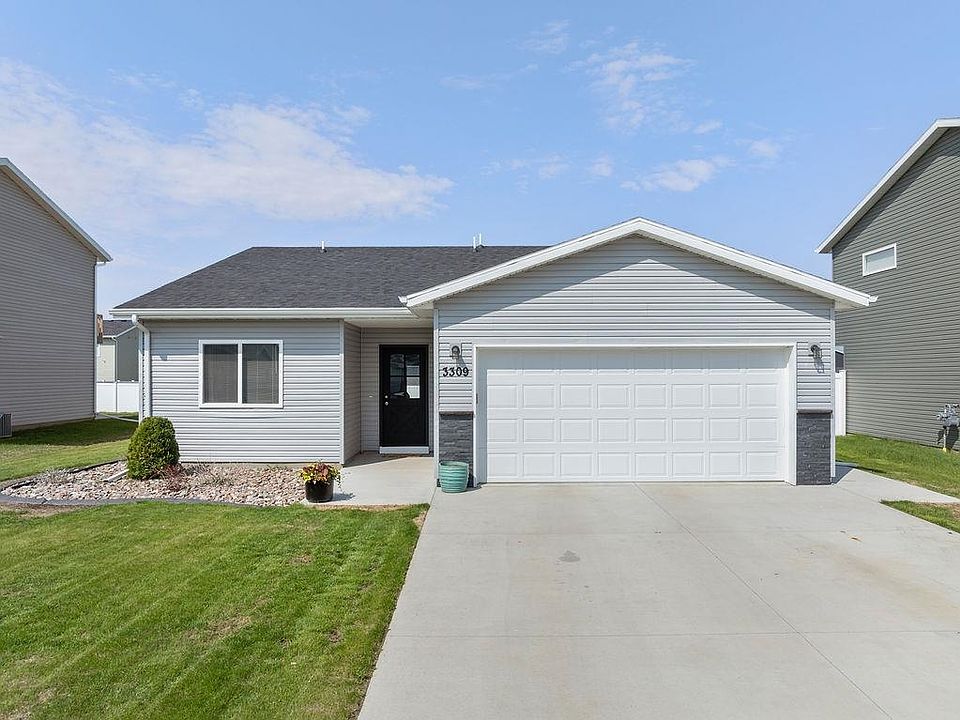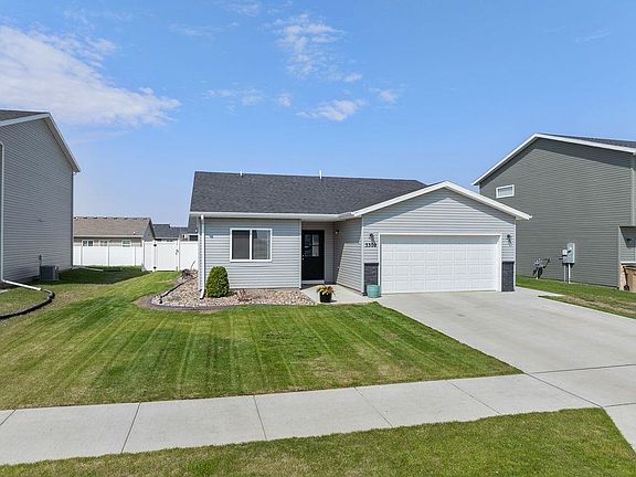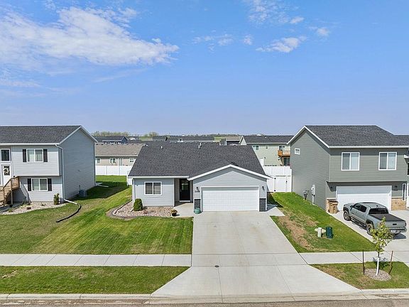 Modern, turn-key home just waiting for you! This open-concept, 3-bedroom home is located in the new Ramstad Heights development in NW Minot. The living area features vaulted ceilings that flow into the kitchen and dining area. The bright kitchen boasts stainless steel appliances, an island with seating, and beautiful quartz countertops. Off the dining room is an easy-access back-door that opens right up to your patio where you can enjoy your fenced yard with professional landscaping. The primary bedroom has a walk-in closet complete with an en-suite. Two additional bedrooms, a full bath, and a handy laundry room complete the living area.  You’ll love the attached, heated two-stall garage.  This location is 10 minutes from the Air Force Base with a new grocery store and airport nearby.