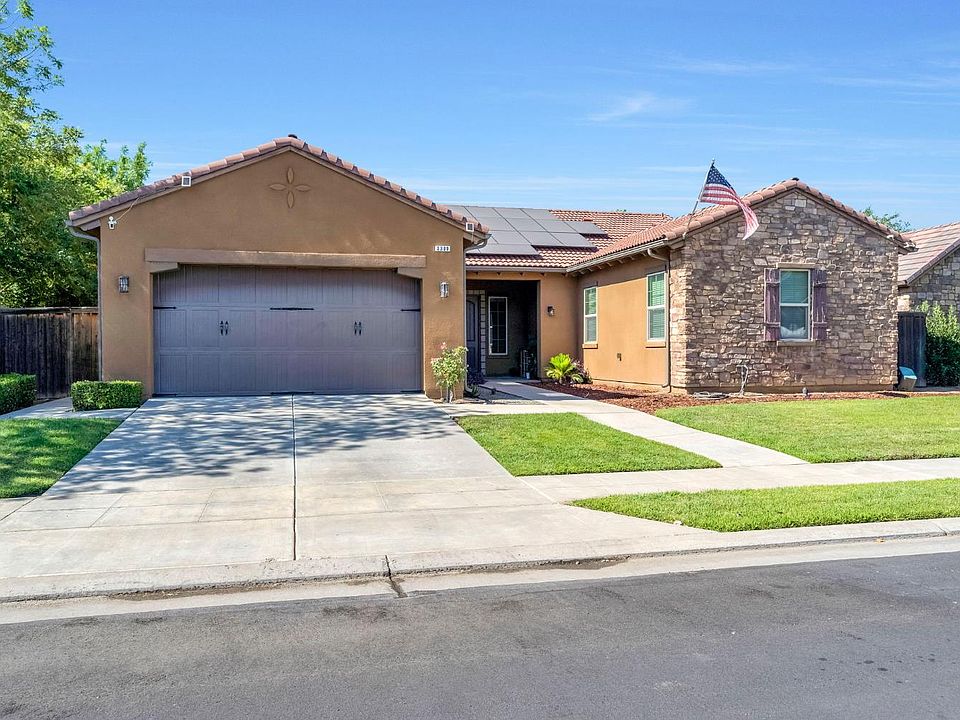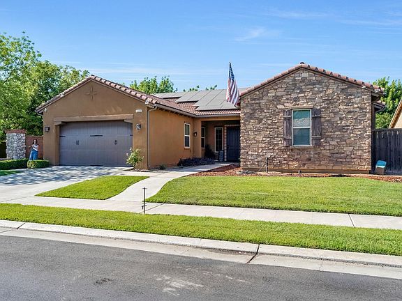 Discover this stunning residence perfectly situated in the highly desirable Clovis Unified School District. This beautifully maintained home features 3 spacious bedrooms and 2 full bathrooms, with an additional versatile space that can serve as a 4th bedroom, playroom, or home office, ideal for today's flexible lifestyle. The open floor plan is accentuated by soaring vaulted ceilings and large windows that flood the space with natural light, creating an inviting and airy atmosphere. Step outside to a beautifully designed, low-maintenance backyard, complete with custom lighting, an above ground spa, covered patio, offering a peaceful retreat. The property is equipped with owned solar panels with no true-up, providing sustainable energy savings and peace of mind. Located near parks and the brand-new Loma Vista shopping center, this home combines modern comfort with convenient access to shopping, dining, and recreation. Perfect for discerning buyers seeking a quality home in a top school district with all the amenities for a relaxed and sophisticated lifestyle.