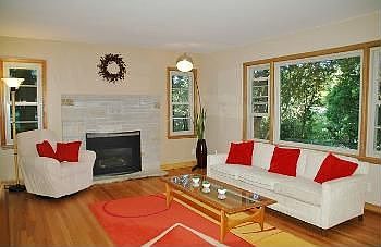 Charming 2 BR in fabulous neighborhood! Close to schools, parks, shopping & transportation! Private! Spacious Living Room w/ loads of windows, oak floors & cozy stone Fireplace! Gorgeous updated kitchen in 2007 w/ cork floors, pantry cabinets, beautiful birch cabinets, Stainless Appliances & unique stone countertops! All windows new 5 yrs w/ warranty! Darling Dining Room w/ stunning French Doors to deck! Lets in lots of light! 2 spacious Bedrooms! Non exp. LL Rec Rm adds space! Attached garage!