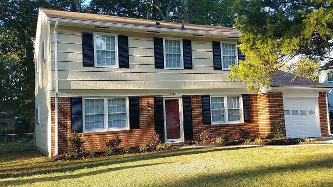Beautifully renovated home with lots of upgrades in centrally located Virginia beach neighborhood. New kitchen with white 42" cabinets with crown molding, recessed lights, granite counters and new stainless steel appliances. New wood floors in kitchen, living room and dining room. New carpet in den and some of the second floor. Refinished hardwood floors upstairs. Fresh paint throughout the home's interior & exterior. Renovated master bath, new blinds and fixtures throughout. Gas heat & water heater. Freshly landscaped with fully fenced backyard and large storage shed. Located close to beaches, bases, shopping, restaurants, and 264.