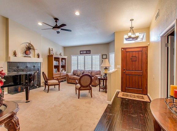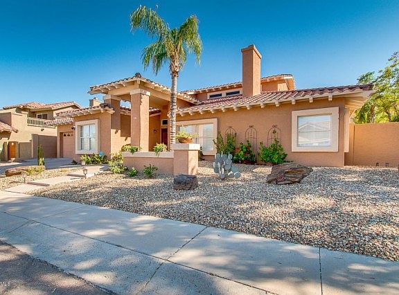 GORGEOUS HOME ON HILLSIDE LOT WITH PRIVACY OF MOUNTAIN PRESERVE. ELEGANT HARDWOOD FLOORING GREETS YOU UPON ENTRY. BRIGHT KITCHEN WITH VIEW WINDOWS, GRANITE COUNTERTOPS, ISLAND WITH BREAKFAST BAR AND WALK-IN PANTRY. SPACIOUS OPEN FLOOR PLAN WITH ADJACENT FAMILY AND FORMAL DINING ROOM. DOWNSTAIRS MASTER SUITE REPLETE WITH SEPARATE DOOR TO PATIO, CEDAR WALK-IN CLOSET AND LARGE CUSTOM SLATE-TILE SHOWER. UPGRADES THROUGHOUT INCLUDE PLANTATION SHUTTERS, LIGHTING, FIXTURES AND CEILING FANS. NEW EXTERIOR PAINT IN 2016 AND INTERIOR IN 2013. 2016 REMODELED UPSTAIRS BATH. SOUTH FACING BACKYARD PARADISE WITH FENCED PEBBLE TEC POOL AND SPA, STAINED CONCRETE PATIO AND COOL DECKING, LARGE COVERED BUILT-IN KITCHEN, TV AND SPEAKERS, PAVERS WITH FIRE PIT, ARTIFICIAL GRASS AND NEW EXTERIOR LIGHTING.