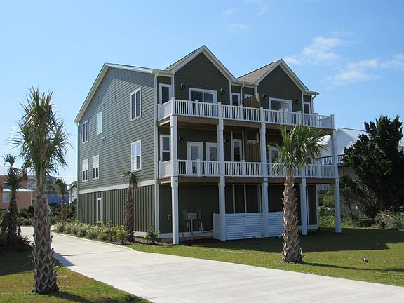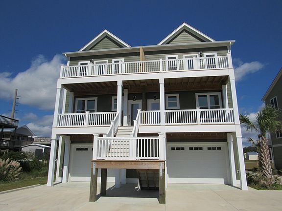 Beautiful, furnished 3rd row 1/2 duplex in Emerald Isle. Views of the ocean and the sound. Great opportunity for a second home or vacation rental. The unit boasts a large 3rd floor living/kitchen area with a 10 foot deck overlooking Bogue Sound. Also on the 3 floor is a Master bedroom, large master bath with separate jetted tub and walk-in shower. There is also a 10 foot deck off of the master suite with views of the ocean. There is also a half bath on this floor. On the second floor there is a covered deck on the ocean and sound side. It has a nice sized family room, full bath, bedroom with it's own bath and a office/bonus room. The large 4 car garage has lots of space for larger vehicles and storage. Call today for a showing of the beautiful new duplex!