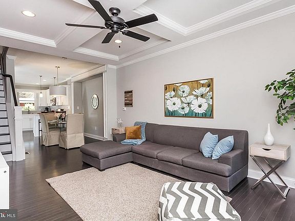 Incredible Canton renovation by Charm City Builders! Brand new 4BR/3BA open-concept beauty featuring gourmet kitchen with quartz countertops, custom cabnts & ss appliances. Hassle-free PARKING, city/water views from ROOFDECK, 8-ft ceilings in fully finished basement, coffered & tray ceilings, crown throughout, new maple hardwood - the list goes on! 2-yr wrnty incl with builder''s pref title co.