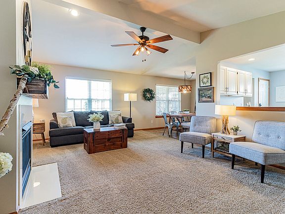 Charming in every way! Neutral tones and fresh accents including the wood mantle above the fireplace give this a Pinterest worthy nod. Everything from the light fixtures to the kitchen cabinets encourages all the feelings of home with nothing to do but move in and enjoy! Freshly painted in 2018 as well as new blinds (all stay). Love an outdoor space on a cool spring and summer evening? The pergola provides shade and privacy and the yard is surrounded by lovely landscaping that include 2 new trees (maple and 3 clump river birch) as well as rose bushes and other perennials that won't disappoint. Freshly mulched beds. Large yard. Other notable improvements include a NEW ROOF-2021 with gutter guards, NEW FURNACE with 4"filter and built in humidifier-2021. Two new ceiling fans (living room and master bedroom) and dining room fixture. New smoke detectors-2021 and 2 code operated locks (kitchen into garage and the kitchen to the backyard). Enjoy the tour and make it yours today!