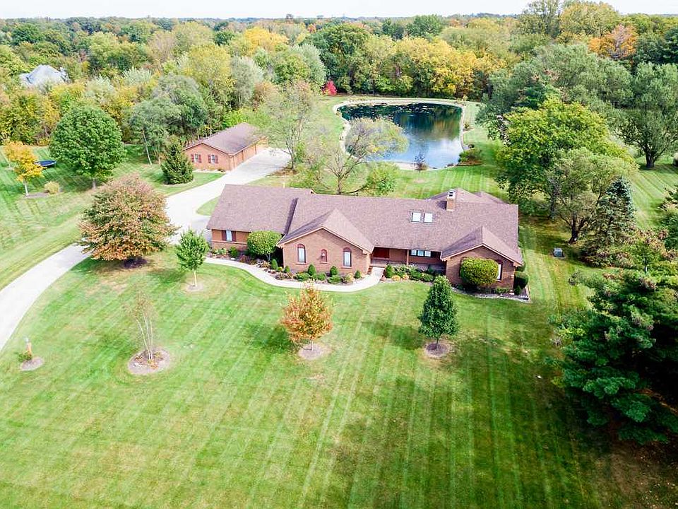 Well-built, brick and cedar ranch on a basement sitting on close to 3 acres w/ fully stocked pond and large detached garage - 3,032 finished sq. ft. w/ 3BR and 3 full baths - the great room is open to the eating area and kitchen and has cathedral ceilings, a floor to ceiling brick surround fireplace w/ built-ins, skylights, and direct access to the sunroom - the kitchen is highlighted by stone countertops (two-tier breakfast bar and island), top of the line cabinetry, and new flooring (installed 10/12/17) - there is also a formal dining area, sunroom (w/ built-in hottub) and three bedrooms - bedrooms 2 and 3 each have their own full bath - master suite is large and has a massive walk-in closet and shower (flooring is also being installed in all three bathrooms 10/12/17) - the full basement is clean and unfinished and has a fireplace and convenient walk-up access to the three-car garage - additional features of this home include a security system, plumbing for a bathroom in the basement, two wells, HVAC system replaced less than two years ago, and highly-desired Southwest Allen County Schools