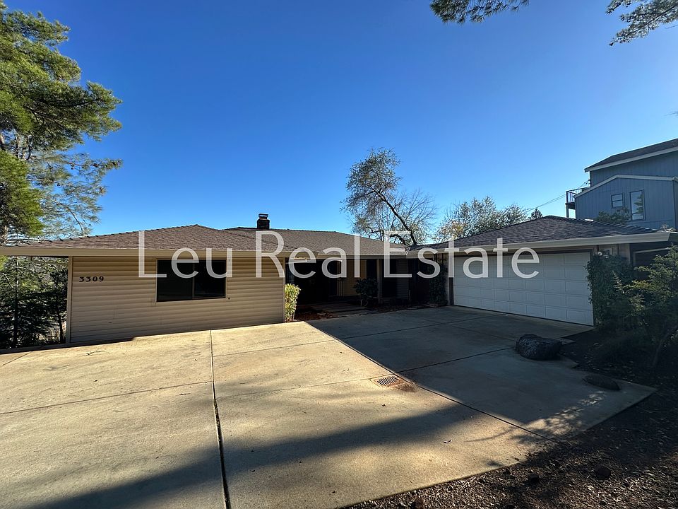 Spacious 2-bedroom, 2-bath home in beautiful Cameron Park, offering stunning views and a serene setting. The expansive deck spans the length of the home, perfect for relaxing or entertaining. The sunken great room features a cozy wood-burning stove and a wet bar, ideal for gatherings. The kitchen boasts a functional island. The master suite includes a walk-in closet with custom shelving. Convenient inside laundry. Refrigerator provided as a convenience item for tenants use. Landscaping is professionally maintained with gardening services included. A perfect blend of comfort and style! Offered by Leu Real Estate DRE#01860066 One Year Lease No Pets Application Fee $45.00 Available Now.