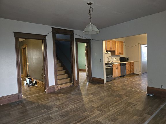 Peaceful country views and plenty of room, inside and out, in this charming 4-bedroom farmhouse! Original woodwork throughout most of the house, and you will even find a pocket door, or two. Option of setting up the master bedroom on 1st or 2nd level; all bedrooms are generous in size. Full bath on second level, half bath on main level. Enjoy sunrises from the back deck swing and take it a step further by adding a hot tub to the decorative stamped patio. Deck is fitted for approx 24' round swimming pool. Shed in NE corner of property is not included but can be purchased from landowner in separate transaction. Property sold as-is.