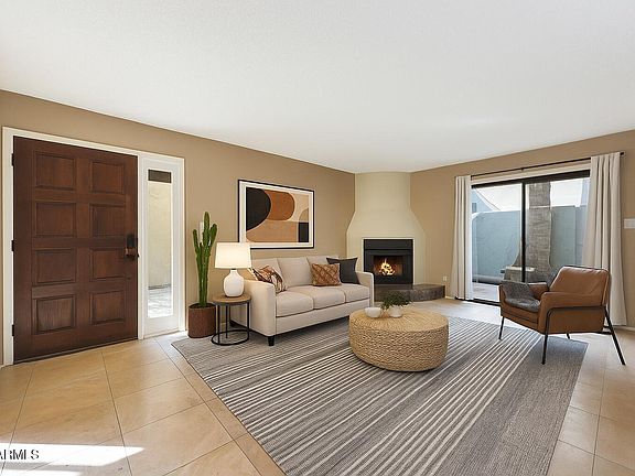 Charming ground-floor 2-bedroom condo in Desert Cove, right in the heart of Scottsdale! This light and bright home features oversized neutral tile, a cozy fireplace, and an open layout perfect for everyday living. The kitchen shines with upgraded cabinetry, granite counters, stainless steel appliances, and a breakfast bar for casual dining. Enjoy two private patios, including one off the primary suite—ideal for morning coffee or evening relaxation. Just steps away from shops, restaurants, and all the fun of Old Town Scottsdale, this condo offers the ultimate in convenience and lifestyle. The hoa is in the process of painting the exterior of the buildings.