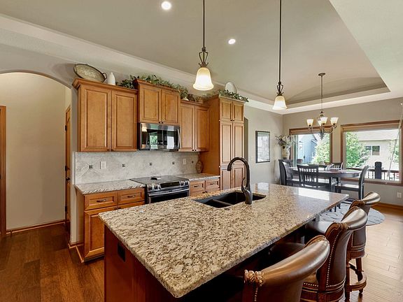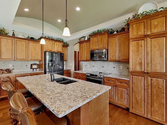 Welcome to this stunning home located in the desirable Fontana neighborhood of the sought-after Maize school district. Built in 2018, this new home offers modern elegance and convenience in a prime location. Situated close to all the restaurants and shopping at New Market Square, you'll enjoy easy access to a variety of amenities. This home has a very low remaining amount of specials compared to other homes for sale in the neighborhood! This home features three bedrooms and two bathrooms, and provides space for comfortable living. As you step inside, you'll be greeted by gorgeous wood floors that flow throughout the main living areas. The kitchen is a chef's dream, featuring granite countertops, a walk-in pantry, and plenty of counter space. All kitchen appliances will remain with the home, making it move-in ready. The master bedroom is a true sanctuary with its relaxing standing soaker tub and separate shower. The two sinks and vanity, all adorned with granite countertops, add a touch of luxury. The master bedroom also features a spacious walk-in closet that conveniently connects to the laundry room, adding functionality to your daily routines. With its own entrance onto the covered deck, the master bedroom provides a private retreat. Situated on a spacious corner lot, this property includes an irrigation well, ensuring a lush and vibrant outdoor space. The three-car garage offers ample room for parking and storage. The unfinished basement presents a blank canvas for you to design and personalize according to your preferences. Plumbing for a potential wet bar and full bathroom is already in place, and there's a framed-in space for a bedroom, providing flexibility and versatility. Additionally, there's plenty of living space and an extra unfinished room dedicated to utilities and storage. Don't miss out on the opportunity to make this beautiful home yours. Schedule a showing today and envision the endless possibilities this property has to offer!
