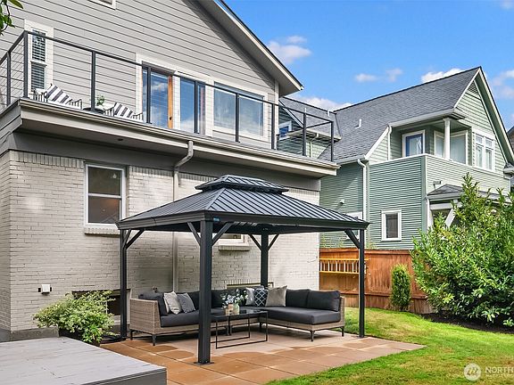 Storybook Sunset Hill 5BR/2BA coastal-style home w/ water views from both levels, and a top floor primary suite with water view office & private deck! Nestled on a fenced lot framed by hydrangeas & wisteria, this home blends timeless charm w/ modern livability. Light-filled rooms capture sparkling vistas, while the deck, gazebo & lush garden create an entertainer’s paradise in the level backyard. Enjoy morning coffee overlooking the water, garden parties under twinkling lights, or quiet evenings surrounded by beauty. Classic design, private outdoor oasis & a coveted location—this home is a rare chance to live the coastal PNW lifestyle minutes from Ballard shops, cafes, marina & highly rated schools.