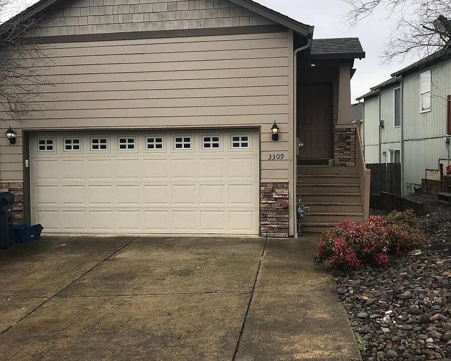 In middle of Complete remodel in this 1481 sq ft home. All new paint, carpet, stainless steel appliances, quartz counters, sinks, nickel faucets, LED lighting, new LED lights fixtures in bathrooms, fireplace, vaulted ceilings, nice backyard with large deck & fenced. This is actually 3315 NW Pacific Rim which is next door to the unit photographed. The only difference will be the hardwood floor. It will be carpet upstairs but all new counters and appliances. Pets ok with a deposit. Renter responsible for utilities and garbage.