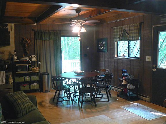 SITTING PRETTYMountain Chalet nestled on a nice wooded lot. Country Interior great room with a wood burning stove. Enclosed porch with plenty of windows to view the wild life. Bedroom and bath on main level. Two large bedrooms on the second floor with venting skylights. Front and side decks for outdoor entertainment. Wood shed for storage., Baths: 1 Bath Lev 1, Beds: 1 Bed 1st,2+ Bed 2nd, SqFt Fin - Main: 852.00, SqFt Fin - 3rd: 0.00, Tax Information: Available, Dining Area: Y, Sewer Comm Central: Y, SqFt Fin - 2nd: 168.00