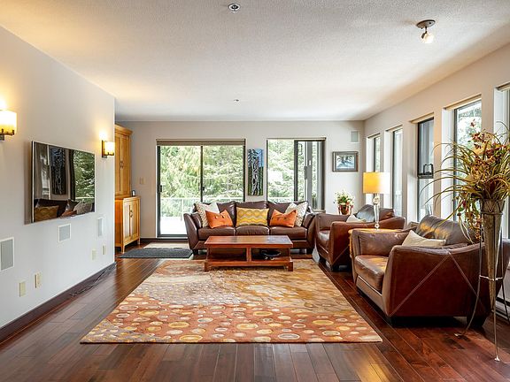 123 Greyhawk is a fabulous renovated ground floor unit that is absolutely breathtaking and must be seen. Featuring 2 spacious bedrooms & 2 bathrooms throughout the 1,450 sq/ft of living space. This is a great unit if you are looking for your full time Whistler home, your mountain getaway or investment property as the flexible zoning for the complex does allow owners to rent on a nightly/weekly basis. Enjoy the unique floor plan that offers an open concept kitchen, dining and living room that walks out onto a lovely patio space. The primary suite also has its own outdoor space where you will undoubtedly enjoy starting and ending your day! Notable complex amenities include; secure underground parking, storage, common area lounge with pool table, sauna & hot tub.