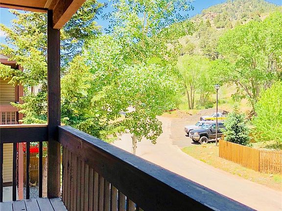 This charming townhome will steal your heart with a master balcony boasting mountain views, views of Clear Creek (and rafters) from the second bedroom, and a crackling free-standing pellet stove for chilly mountain nights. New ceramic tile in the kitchen and bathrooms and new water heater. Lovingly cared for by one owner for the past 19 years. Fenced back yard and deep attached garage. NO HOA for this mountain townhome! Tons of storage! Located 33 minutes from Loveland Ski Area and Echo Mountain Terrain Park, 1 hour from Breckenridge, minutes from gold panning, the Stanley Mine, and a 5 minute drive or 25 minute walk to the bustling downtown area, with restaurants, bars, and unique mountain shops. This property is also a WONDERFUL Airbnb/investment opportunity! Also a wonderful starter home! Fenced back yard has a gate that opens right on the bank of Clear Creek! Come quick, this little gem won't last long!