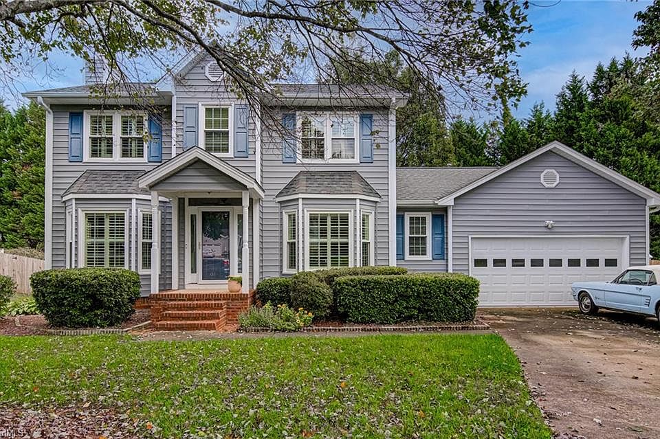 Fantastic move in ready home in NW Greensboro! Traditional style home located in cul-de-sac offers a large fenced in yard. Gracious size den has built in work station and shelves. Light kitchen with gorgeous quartz countertops and stainless steel stove and microwave. Main level laundry room offers a lot of storage and a utility sink. Well finished garage complete with epoxy floors! The primary bedroom offers great space with vaulted ceilings. The primary bath has a shower and separate tub for soaking your worries away. Two additional bedrooms on the upstairs level along with an updated hall bath and good sized linen closet. HVAC replaced in 2024. Water heater replaced in 2022. New carpet throughout the upper level with newer wood style pergo floors on the main level.