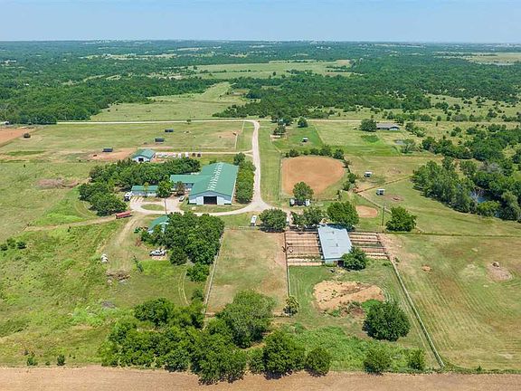 WORDS AND PICTURES SIMPLY DON'T DO IT JUSTICE! This is a once-in-a-lifetime chance to own a major equine boarding and training facility just minutes from the OSU campus in NW Stillwater. Located on over 42 acres, the property consists of a main living structure with three (3) apartments, each 2 Bed/1 Bath, built in 1994. The main structure has approx. 4,608 SF of finished living space. The downstairs apartment boasts a stunning kitchen w/ quartz countertops, barn door pantry, beautiful designer cabinets, large island with farmhouse sink, open-concept living/dining area, engineered bamboo wood flooring, and beautiful spiral staircase that can be used to reconnect the downstairs apartment to the apartment above if needed/desired in the future. Upstairs apartments in the main structure feature full kitchen with dishwashers and stoves, in-unit laundry, separate A/C units, newer hot water heaters and plenty of natural light. Also on site is the original farmhouse, built in 1945 and lovingly restored with 869 SF of finished living area, including kitchen, bath/laundry, and 2 bedrooms all situated on a fenced 0.25 acre lot. The farmhouse features numerous upgrades, including newer siding, windows, metal roof, remodeled bathroom (2021) with tiled shower surround, luxury vinyl plank flooring, new PEX/PVC plumbing, recent breaker panel, new kitchen countertop and sink (2021). A/C units for the main building are approximately five years old. Aside from the living quarters, this property features a 72x220' indoor lighted arena with sprinkler system, plus adjacent tack room and sauna with nearby in-ground storm shelter. Also included are a number of outbuildings and equine facilities, including two-car detached garage and shop with concrete floors, power overhead door, and electric; 45x45' hay barn with concrete floors and electricity, plus a lean-to chicken coop; South Barn with 17 ct. 12x12' matted stalls with runs and turn-out pens/paddocks, electricity and water, enclosed grain room and additional space for tack; 40x60' North Barn built in 2010 with 8 ct. 12x12' matted stalls with runs and turn-out paddock, tack and feed spaces, swing-out feeders, electricity and water; bunkhouse with two bathrooms, tack room, kitchenette, window A/C unit, and new metal roof (2022). There is plenty of outdoor space for horses as well, including fenced outdoor arena, 50' round pen, six loafing sheds and five fenced pasture spaces. Make your appointment today to view this one-of-a-kind horse property just minutes from OSU and adjacent to the Stillwater Regional Airport in Stillwater School District!