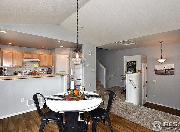 Clean and well maintained 4-level home with an open floor plan, vaulted ceilings,tiled back splash. gas range and pantry in kitchen, wood laminate floors, walkout lower level, full master bath, walk-in closet, central A/C, fenced backyard, unfinished basement. Easy access to on I-25 south to Denver or North to Fort Collins.