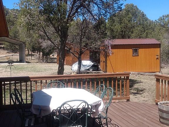 Home sits on 35 acres of pine trees and meadows in mountains. Detached 2-car garage, 3 storage and firewood outbuildings and RV pad with carport, water septic and electricity. Remodeled kitchen and bathrooms as well as new flooring. Fenced court yard. Huge wrap around deck with outdoor fireplace.
