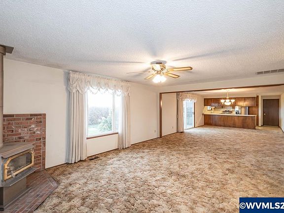 SPRAWLING RANCHER ON 5 ACRES! Beautifully maintained, single-level home features large rooms, updated vinyl windows & fiber cement siding. Spacious kitchen w/newer SS appliances, abundant cabinets and counter space. Large formal dining rm. Living rm w/wood burning fireplace. Family rm w/certified wood stove. Extra large garage with half bath and laundry. Outside you will find a 28 x 20 barn, garden areas, fruit orchard, filbert trees & abundant parking. Easy Hwy 34 & I-5 access for commuters.