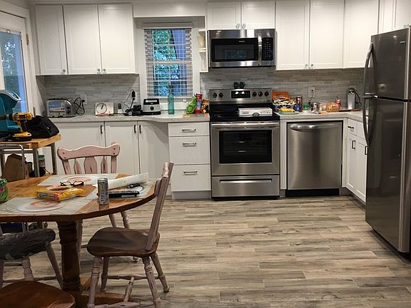 Home was completely renovated in 2018. Started from concrete floor, studs and rafters. Completely new wiring and plumbing. New heat pump, appliances, cabinets. Replaced and enlarged all windows. House has enclosed shower/storage attached to rear.