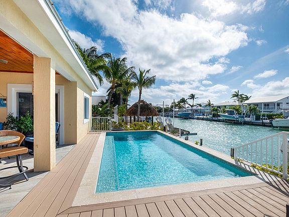 Newly built in 2021 Custom, Steel Frame Construction, by ''Spray Rock''. This home is rated for winds to 250 mph! Enter into the inviting foyer and meander into the wide, open living room, dining room and kitchen. With the large impact windows and slider, you are immediately lured onto the covered patio and decked pool, expanding your living canal side. Attention anglers and boating enthusiasts, if you are looking for a 60 ft dock and 15,000 lb lift, look no further, here it is! Only 5 minutes to OPEN Ocean and less than 10 minutes to the open Gulf via Vaca Cut. Charming, primary suite is bright and airy with slider and views of the pool and canal. Two roomy guest bedrooms, walk in pantry, laundry room and 2 car garage, make this the complete package for your Island Dream Home, Retirement Home or Vacation Getaway in the heart of the Florida Keys.