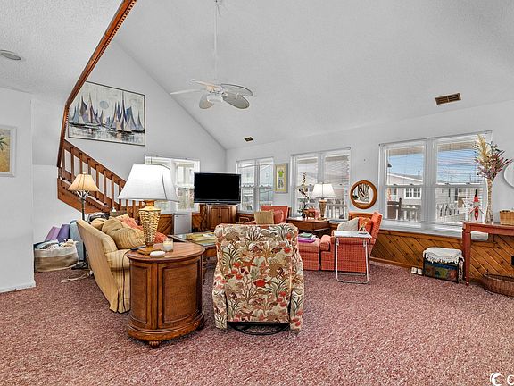 Excellent opportunity to own a classic raised beach home on one of the best channel streets in Cherry Grove Beach! Spacious and roomy with over 1900 square feet of interior space and plenty of outdoor decking to enjoy the beach life! Direct channel front location and just a short block and a half walk to the oceanfront. A large front porch welcomes you into a wonderful open living space. The main floor offers a vaulted ceiling and loft style staircase. A combined kitchen, dining and living area provides a great communal space to gather and enjoy meals. Two bedrooms are also on the main floor with bathroom. A guest powder room is also available as well. Upstairs, two additional bedrooms and bath and a large loft area that can be used as flex space. This home has many features including a new roof in 2020 and an open elevator making accessibility easy on the rear of the home. A vinyl siding exterior allows for low maintenance along with white vinyl deck railing throughout. Outside, you will find ample decking to enjoy all the channel views. A widows walk is attached to the roof for stellar 360 degree views of the ocean and channel. Plenty of backyard space and an extended fixed deck over the channel add to the appeal of this property. A ground floor storage room and garage can house your golf cart and all beach equipment. An outdoor shower is available as well to rise off after a day at the beach. Boating is made easy here with deep water access just minutes away via the main channel. Sold fully furnished; with some minor exceptions, for a fully turnkey purchase. This home is perfect for a second home getaway or short term rental investment. Don't miss this property and schedule your private showing today! All information is deemed reliable, buyer is responsible for all verification.