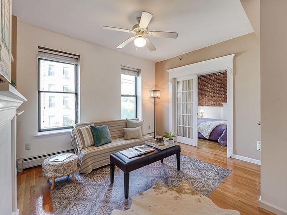 Welcome home to this sunlit 2-bedroom condo! This spacious unit features a modern kitchen with stainless steel appliances and has french doors, exposed brick, wainscoting, and hardwood floors throughout. The proper dining room is great for entertaining or could be used as a perfect WFH space! Both bedrooms are large and offer plenty of storage. Enjoy this prime Hoboken location as this home is conveniently located near the Light Rail, PATH station, Ferry, Bus, restaurants, parks, and so much more! Move-in ready - this is the place you’ve been looking for!