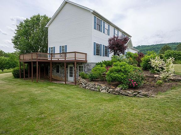 Serene setting for this lovely two story with magnificent views of the surrounding mountains! Over an acre, this property offers ample space for a growing and active family. Large wrap around deck with walk off, lots of space for a garden or play area. The house features three large bedrooms, two full baths on the second floor and a third in the lowest level. A complete remodel of the kitchen has just been completed with new appliances, convenient island and cabinetry which feature the latest labor-saving storage amenities. A room off garage and kitchen is specially set up for the handy homeowner and an unfinished room over the garage offers the possibility of additional finished space. The lowest level features family room, bath and walkout on grade. Oil radiant in-floor heat.