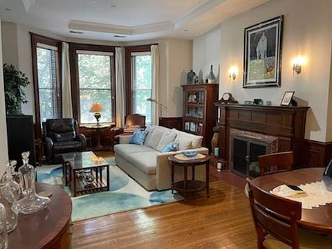 Entire second floor condo with two bedroom two baths in a very well kept brownstone on Beacon Street. The unit is renovated and boasts with lots of natural light, high ceilings with moldings, open floor plan with a dining-room area and a gorgeous bay window overlooking Beacon Street. The unit features central A/C, washer/dryer, granite counter tops, gas cooking, hardwood floors, marble bathrooms and a great deal! 12 months