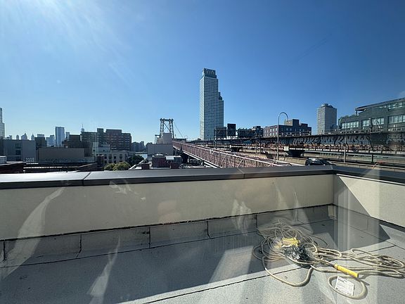 This2 bed 2 bath penthouse offers a large common area with windows and a washer/dryer in unit. Beautiful private rooftop with views of the Williamsburg bridge and Manhattan skyline. Brand new Construction ! It is conveniently located within an 8-minute walk to the Marcy Ave J M Z trains and a 13-minute walk to the Bedford Ave L trains. Alternatively, the water taxi at Schaefer Landing provides a refreshing commute. The location is also just steps away from Domino Park, with moxy hotel, pies and thighs, restaurants including Butler & Co. for coffee and pastries. The apartment features a washer/dryer in unit, central air and heat, a video intercom system, hardwood flooring, a modern kitchen with high-end stainless steel appliances (stove, microwave, dishwasher), a spacious bedroom with great windows and closets, and a modern bathroom. Please note that good income and credit score are required, and guarantors are accepted. The apartment is pet-friendly upon approval only,