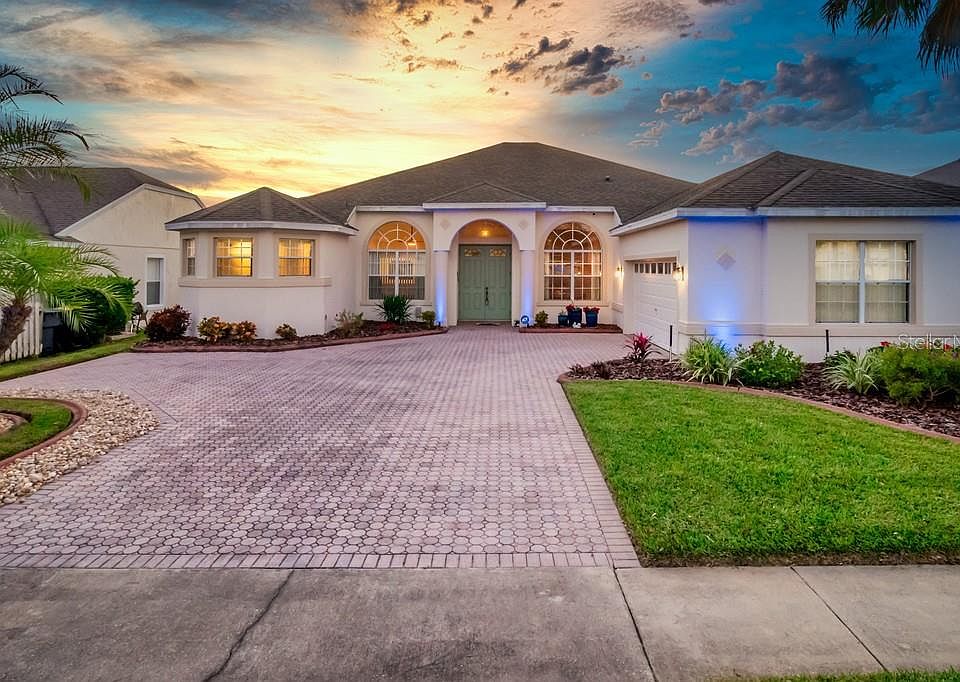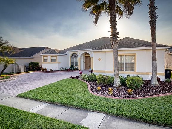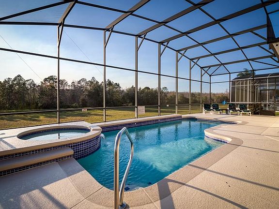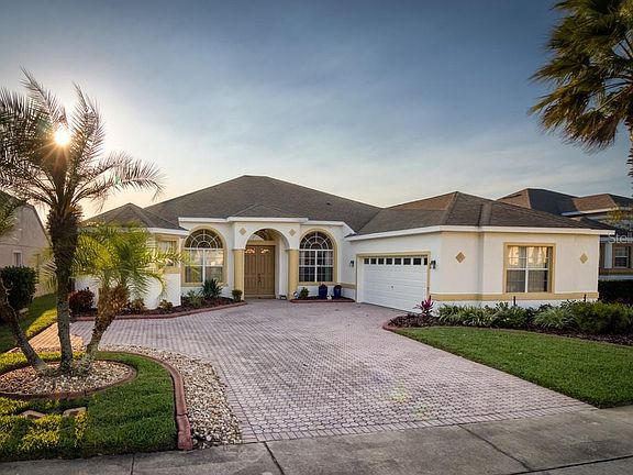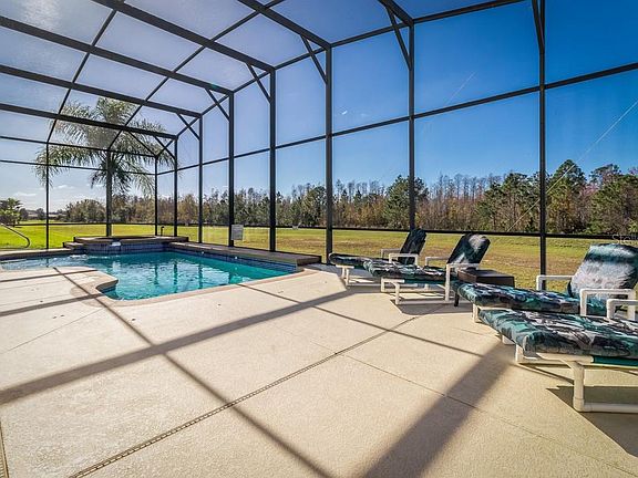 This lovely, 5 bed 3 bath home is situated in the exclusive golf community of Highlands Reserve. This home has not been part of any rental program and has only been used as an owner's getaway retreat. The AC system and Pool heater installed new in the Fall of 2019. Newer tile flooring and carpet throughout. New exterior paint 2020. 331 Birkdale is a very desirable Monterey floor plan (one of only six in the entire community). With 12-foot tall ceilings throughout and windows everywhere you look, the sense of space is very refreshing. Come stand on the oversized pool deck that faces West and shares some of the best views in Highlands Reserve. Watch the amazing Florida sunsets overlooking the conservation area or from the comfort of your heated pool and spa and large covered lanai. With the position of the pool, you enjoy the same benefits of a South facing pool (sun almost all day). You will find that this 2,800 sq ft home is bright and airy and furnished very nicely. There is a formal dining area (that is currently the pool table room) as you enter and then straight ahead is the formal sitting area. As you go to the right you enter the large family room, breakfast table, and kitchen with all new granite. It is very bright and airy with doors leading onto the pool deck. The Master Suite, which is over 50 feet long with a seating area, double closets, twin vanities with Moen fixtures and Granite tops, soaking tub and dual walk-around showers, encompasses the entire left side of the home.