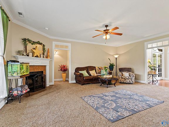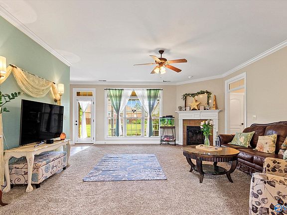 - Features: Ceiling Fan(s), Crown Molding, Carpet, Fireplace, Smooth Ceiling