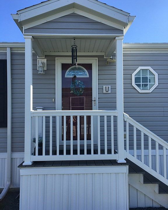 Beautiful! This 4 year young home includes two bedrooms and two full baths, including a master bedroom en suite bath with a custom walk in shower. This sun drenched 1,216 square foot, open floor plan is beautifully laid out and appointed with custom features such as a fantastic custom fully applianced kitchen with a huge center island with custom lighting, sink, dishwasher, additional cabinet space and counter seating. Other features include a fantastic gas cooking stove, custom tiled backsplash, and a cozy dining area. The conveniently located laundry area holds a full sized washer and dryer (negotiable) with plenty of shelving. There are two great sized bedrooms with ample closet space and plenty of room for all sized beds, and dressers. Both exterior exits are upgraded with trex decking and there is a storage shed in the yard. This home is located in the new section of the park. Pine Hills is a highly sought after 55+ community which is beautifully maintained.